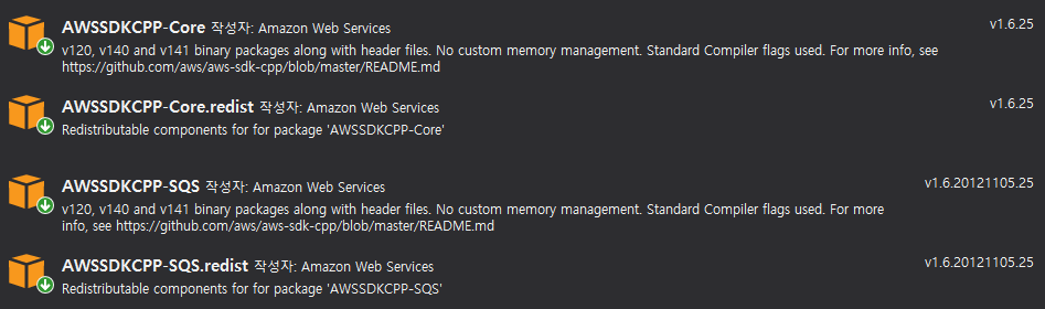 리눅스 계열에서는 aws cpp sdk를 git clone 혹은 별도로 다운받아 설치하시면 됩니다. cmake 시 BUILDONLY 옵션으로 core와 sqs만 지정해서 빌드하시는게 빠릅니다. 전체 설치했다가는 ... -_-a