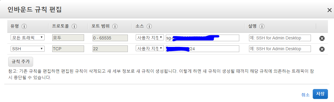 마지막으로 보안 그룹에서 SSH 포트(22)에 대한 인바운드 규칙을 추가하겠습니다.