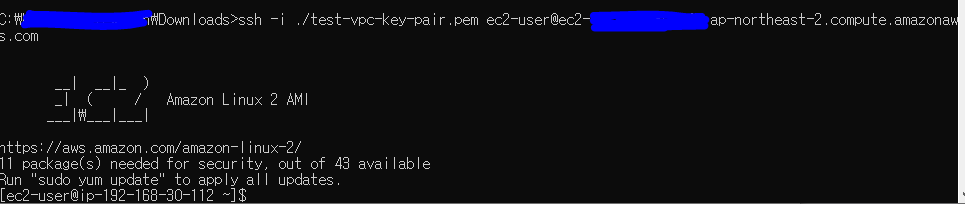ssh -i your_pem_file ec2-user@ec2_public_dns 형태로 접속을 시도하면 됩니다.