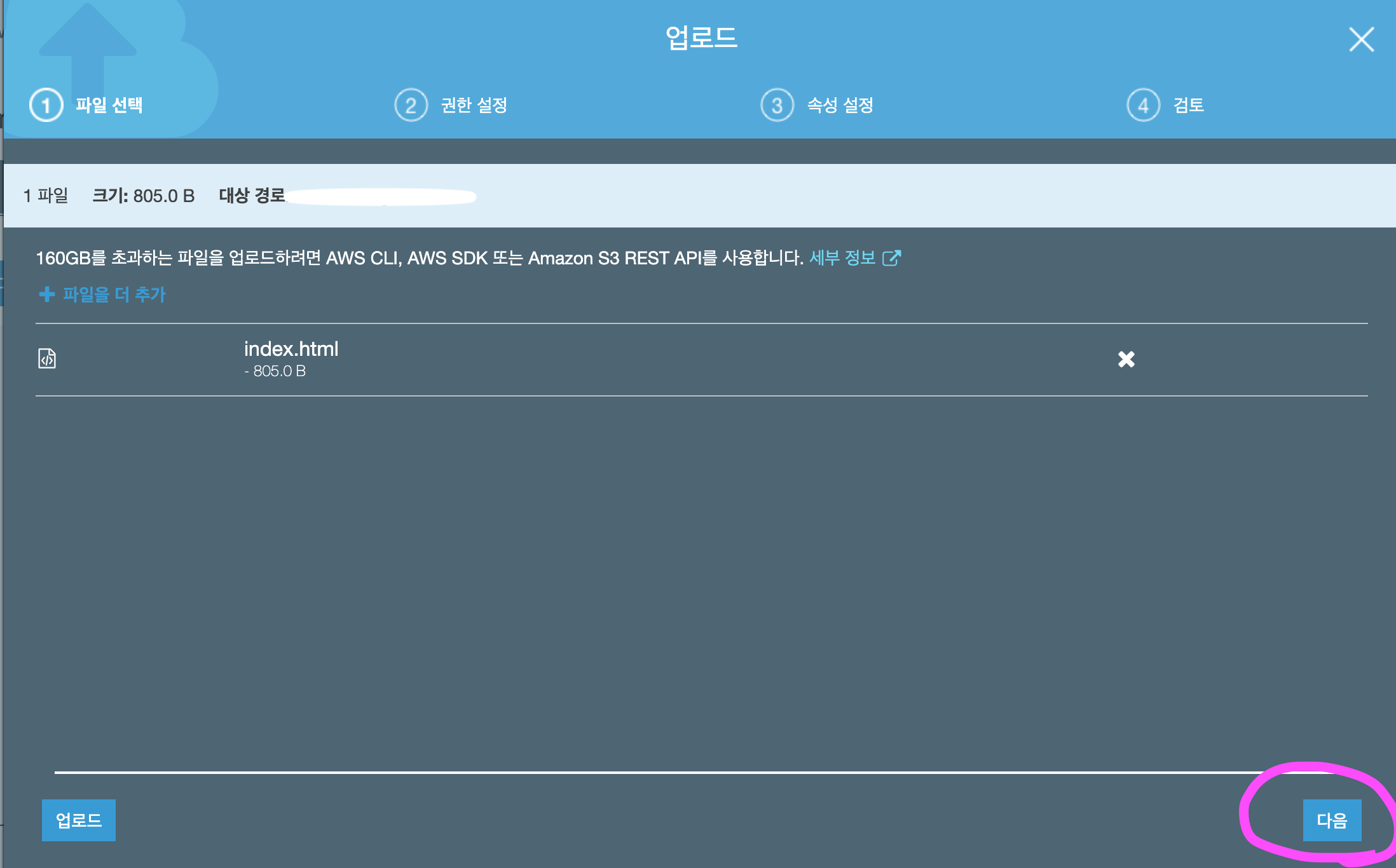 이 파일을 "루드 도메인 버킷"에 업로드합니다.