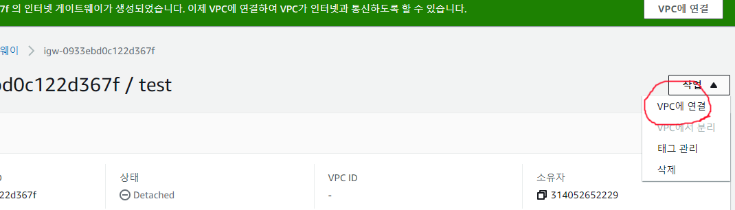 그리고 VPC에 연결합니다.