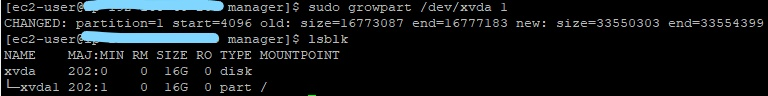 이후 df로 다시 확인하면 xvda1 의 용량이 8G 에서 16G로 확정된 것을 확인 할 수 있습니다.