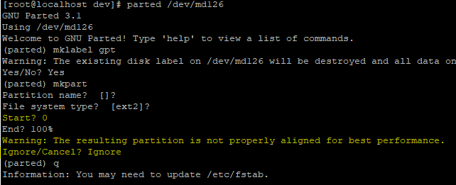 그럼 mkpart의 Start 값은 무엇을 의미하는 것이었을까? 해당 파티션의 사용 범위를 지정하는 것인데... 0이면 왜 경고가 나오는 걸까요?