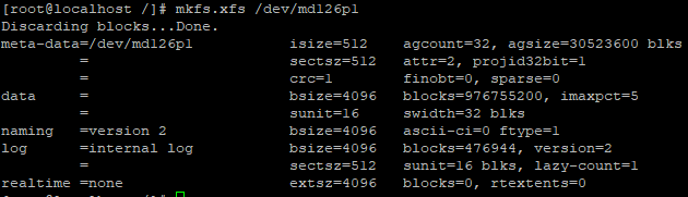 위에서 파일 시스템을 xfs로 설정한 것을 기억하시나요? 지금 다시 xfs 설정을 해보시면 경고없이 깔금하게 설정되는 것을 확인 할 수 있습니다. :)