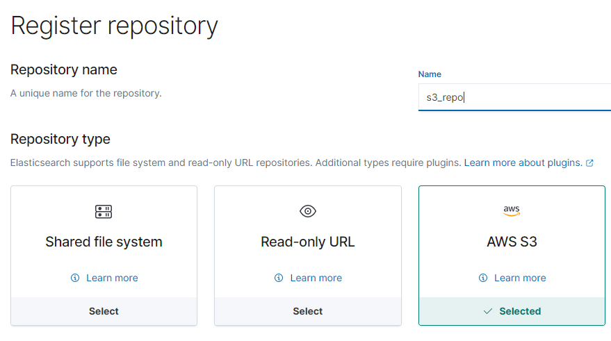 3. Kibana에 AWS S3 저장소 등록