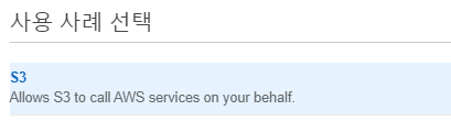 "역할 만들기"에서 "사용 사례 선택" -> "S3"를 선택합니다.