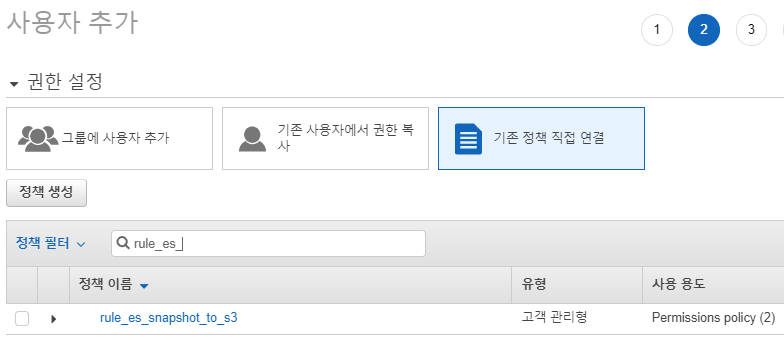 IAM에 ES snapshot을 위한 계정을 등록합니다.