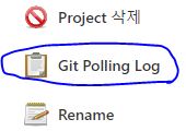 프로젝트 화면 좌측 메뉴에서 "Git Polling Log"를 통해 로그를 확인할 수 있습니다.