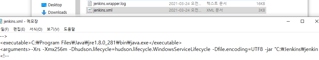 jenkins.xml 파일을 열어 arguments -Dfile.encoding=UTF8 옵션을 추가 후 jenkins를 재실행해야 합니다.