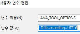 최신 버전에서는 확인된 적이 없지만 혹시 발생한다면 환경변수에 encoding 관련 설정을 추가하면 됩니다.