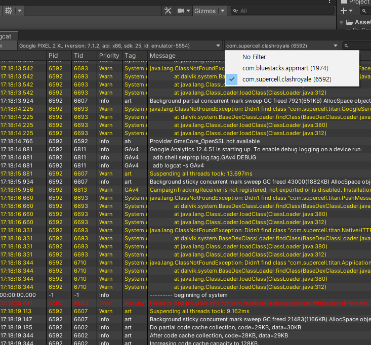 다음으로 unity editor에서 logcat을 실행해 실제 로그를 확인해 보겠습니다.