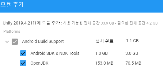사용하는 프로젝트에서 사용중인 버전에 모듈 추가를 선택 후 SDK/NDK/JDK를 선택/설치하시면 됩니다.