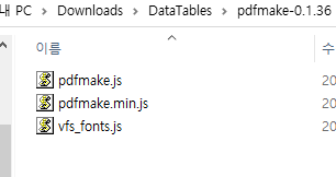 - pdfmake-master\build 폴더에서 pdfmake.js , pdfmake.min.js , vfs_fonts.js 파일이 생성된 것을 확인