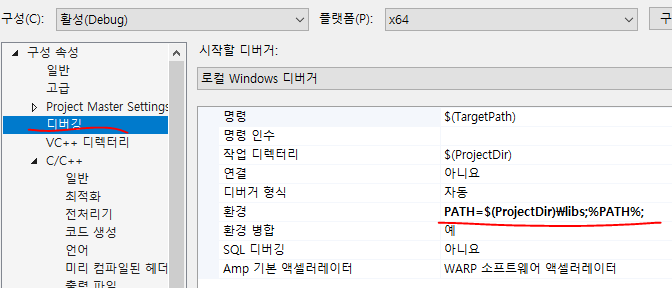 더 설명은 필요 없을 듯. 이미지처럼 libs에 dll 파일들 싹 모아서 넣을 수도 있고, 해당 dll 있는 위치 경로 넣어줄 수도 있고...