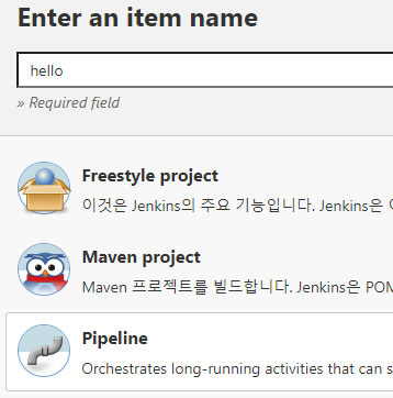 이제 Jenkins Dashboard에서 새로운 Item을 생성합니다.