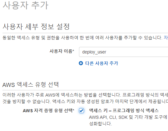 우선 사용할 계정을 하나 생성하겠습니다. CD에 사용할 계정은 인프라 관리를 위한 중요 권한을 할당해야 하는데, 안쓸때도 권한을 유지하기 보다는 AssumeRole을 이용하여 CD 시에만 일시적으로 권한을 할당하여 사용하도록 하겠습니다.
