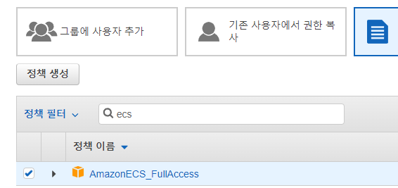 사용하는 계정에는 ECS Access 권한이 필요합니다.
