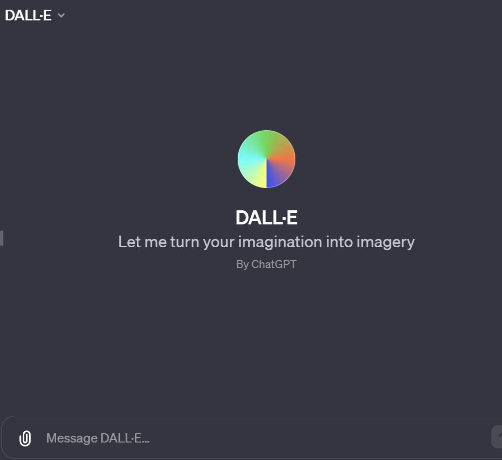 우리는 이미지 생성이 필요하므로 DALL E를 선택합니다. 그럼 아래와 같은 화면을 볼 수 있습니다.