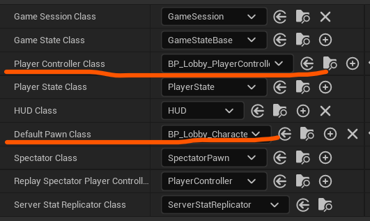 - Default Pawn Class : 기본 플레이어 캐릭터. https://docs.unrealengine.com/5.3/ko/pawn-in-unreal-engine/ 의 default pawn 참고.