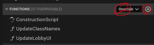두 개의 지역함수(언리얼에서는 쓰는 용어는 아닐 수 있습니다. 이 BP Class 내에서만 사용되는 함수라는 의미입니다.)를 포함하고 있고 UpdateLobbyUI(접속한 유저수 표기), UpdateClassNames(접속한 유저 이름 표기)가 있으며 모두 EventOnPostLogin에서 호출되는 것을 확인할 수 있습니다.