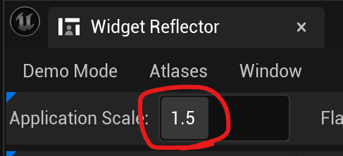 Widget reflector에서 Application Scale을 1.5로 저정하면 툴의 UI 크기를 좀 더 크게 볼 수 있다.