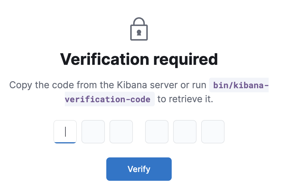(* 처음부터 여기 출력된 링크를 통해 kibana를 실행했다면 인증코드 확인 창은 안뜹니다.)