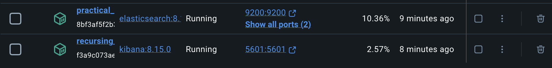 우선 Docker Desktop에서 Elasticsearch , Kibana 이미지를 찾아 실행합니다.