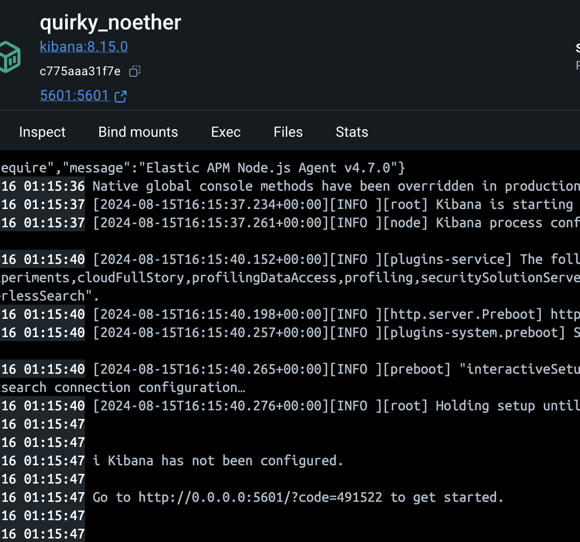 이 코드는 kibana docker logs탭에서 확인할 수 있습니다.