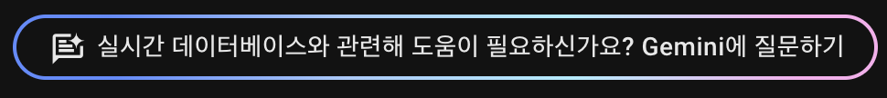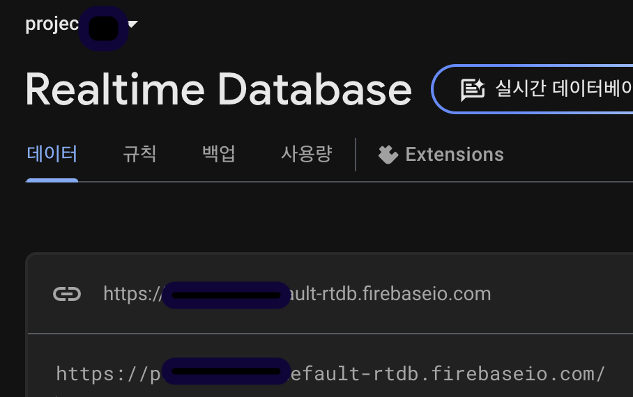 우선 firebase 콘솔 왼쪽 화면에서 rtb를 선택해 생성을 시도합니다. 그럼 아래와 같은 주소가 할당됩니다.