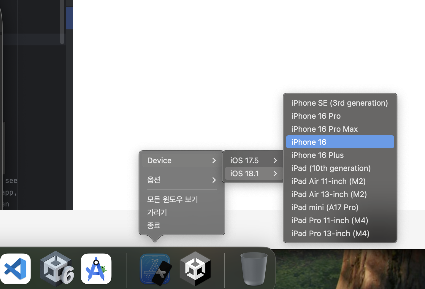 마지막으로 iOS 시뮬레이터에서 실행되는걸 확인해 보겠습니다.