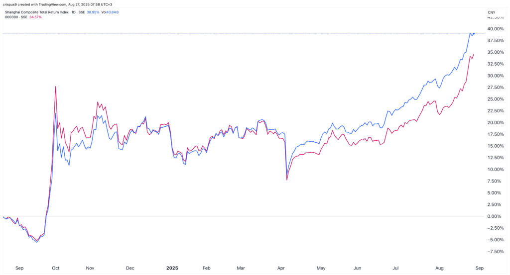 - 중국 (상하이 종합): 중국 증시는 자국 경제의 펀더멘털 우려와는 다소 동떨어진 강한 상승세를 보이고 있다. 상하이 종합지수는 9월 8일 3,827 포인트를 기록하며 연초 대비 40% 가까운 상승률을 보였다. 이러한 랠리의 배경에는 ▲부동산 시장 붕괴 이후 마땅한 투자처를 찾지 못한 막대한 가계 저축 자금의 증시 유입, ▲AI 산업 육성에 대한 정부의 강력한 의지, ▲글로벌 유동성 환경 개선 등이 복합적으로 작용하고 있다. 이는 중국 시장이 내부적 동력과 외부적 환경의 시너지를 통해 독자적인 강세장을 구축하고 있음을 시사한다.