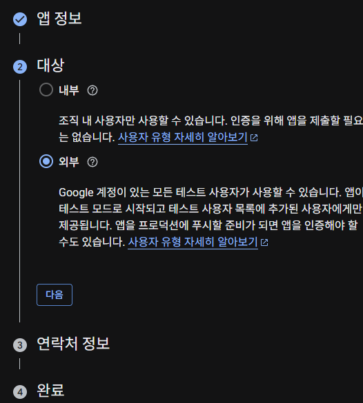 완료했다면 다음으로 Oauth client 만들기를 진행한다.