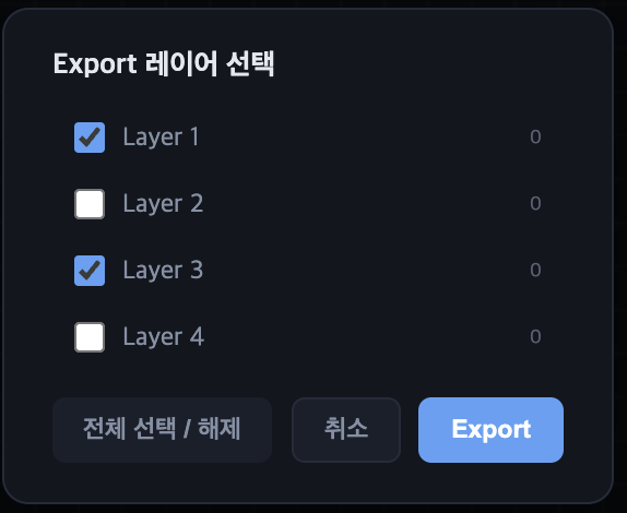 2. export 시 layer 선택 기능 추가